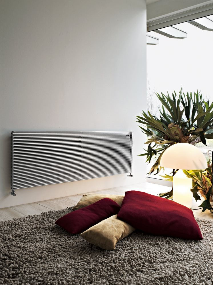 Wyrafinowany grzejnik ze stali nierdzewnej wykonany z rurek o średnicy 10 mm ustawionych pionowo. Dostępne modele pionowe, poziome, pojedyncze i podwójne. Na życzenie uchwyty do montażu jako ścianka działowa lub mocowania podłoga - sufit.